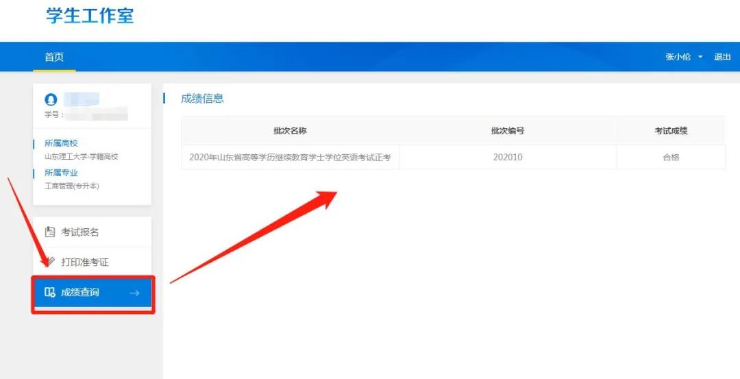 2、點擊左側(cè)成績查詢