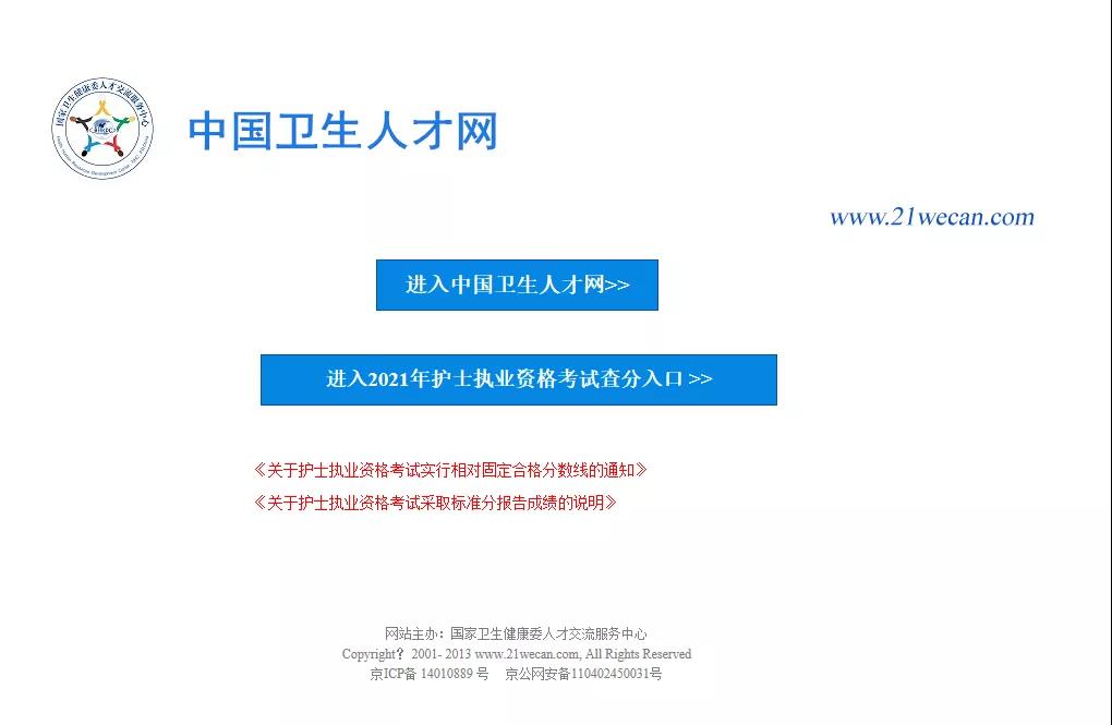 即日起,2021年護(hù)士執(zhí)業(yè)資格考試成績(jī)開(kāi)放查詢,考生可登錄“中國(guó)衛(wèi)生人才網(wǎng)”網(wǎng)站進(jìn)行查詢。