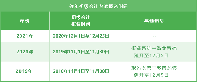 2022年初級(jí)會(huì)計(jì)報(bào)名時(shí)間暫未公布,不過(guò)考生可以參照一下往年初級(jí)會(huì)計(jì)考試報(bào)名時(shí)間: