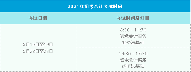 2021年初級(jí)會(huì)計(jì)考試時(shí)間為2021年5月15日至19日,5月22日至23日,分兩個(gè)時(shí)間段進(jìn)行。具體時(shí)間安排如下,僅供考生參考!