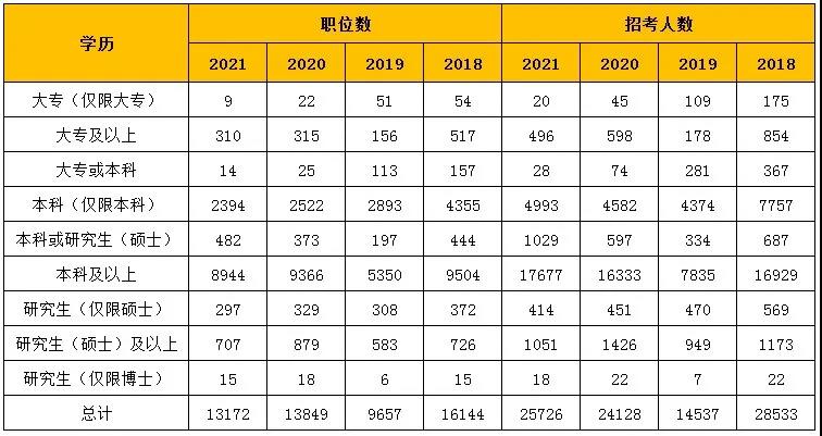 ▲歷年國家公務員學歷要求及對應職位數(shù)、招考人數(shù)