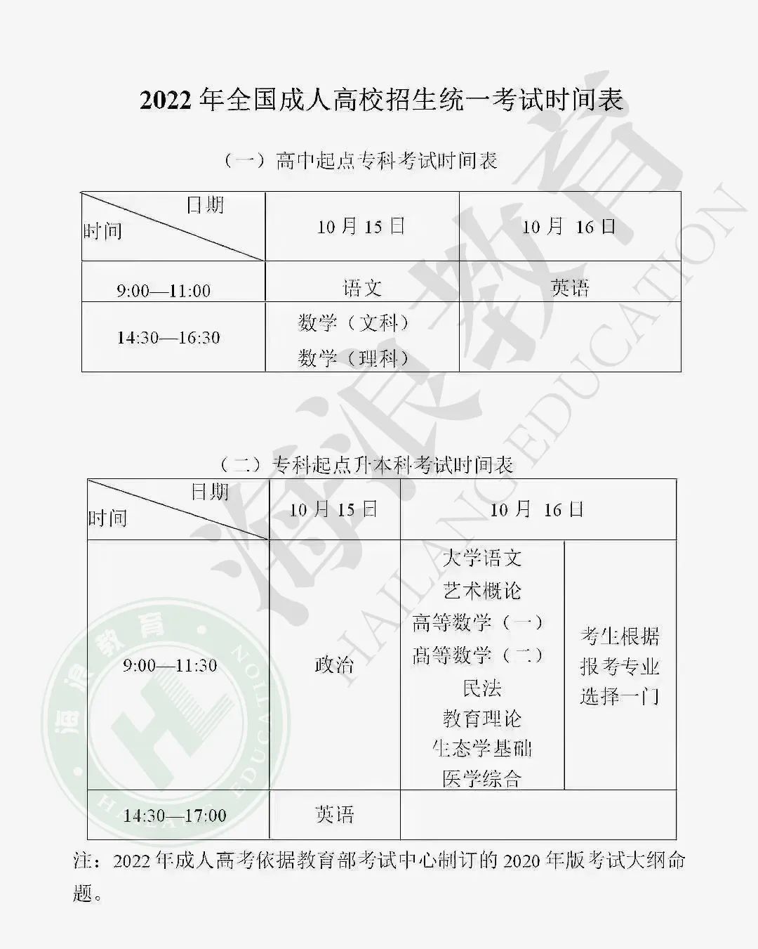 3、高起專統(tǒng)考科目每門考試時間為120分鐘,專升本每門考試時間為150分鐘。