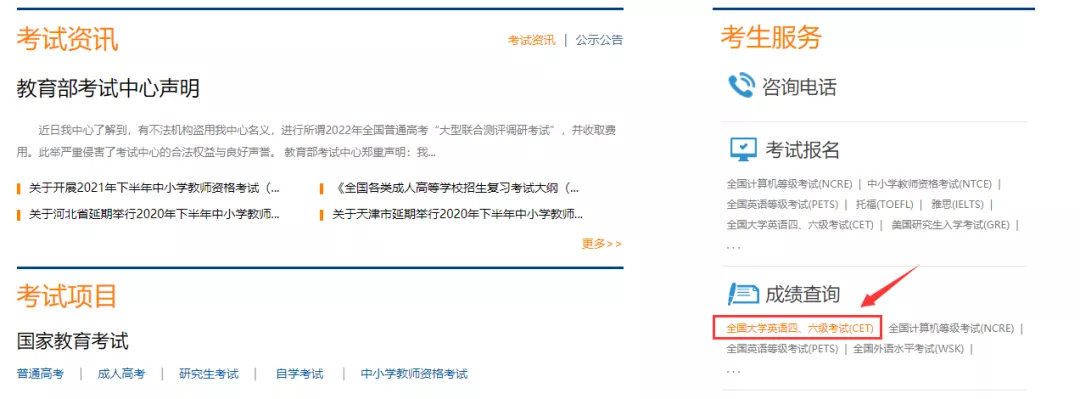 考生可于9月27日10時(shí)起登錄中國(guó)教育考試網(wǎng)(http://www.neea.edu.cn/),右側(cè)欄“成績(jī)查詢”,選擇“全國(guó)大學(xué)英語(yǔ)四、六級(jí)考試”,填寫姓名及身份證號(hào)碼即可查看下載電子成績(jī)報(bào)告單。