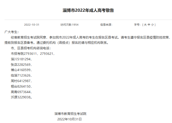 淄博市本周末舉行的成人高考統(tǒng)一入學(xué)考試改為在報(bào)名區(qū)縣考試