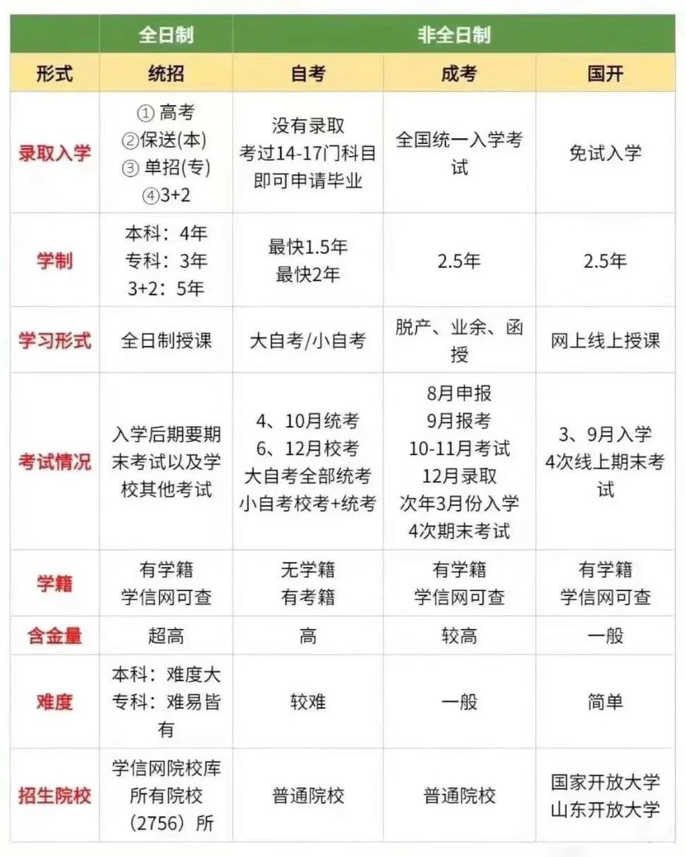 學(xué)習(xí)形式存在全脫產(chǎn)(全日制)、半脫產(chǎn)(業(yè)余)、函授三種形式。參加成人高考,不僅是為了獲得一紙文憑,更是為了實現(xiàn)自我價值以及追求更好的工作生活。