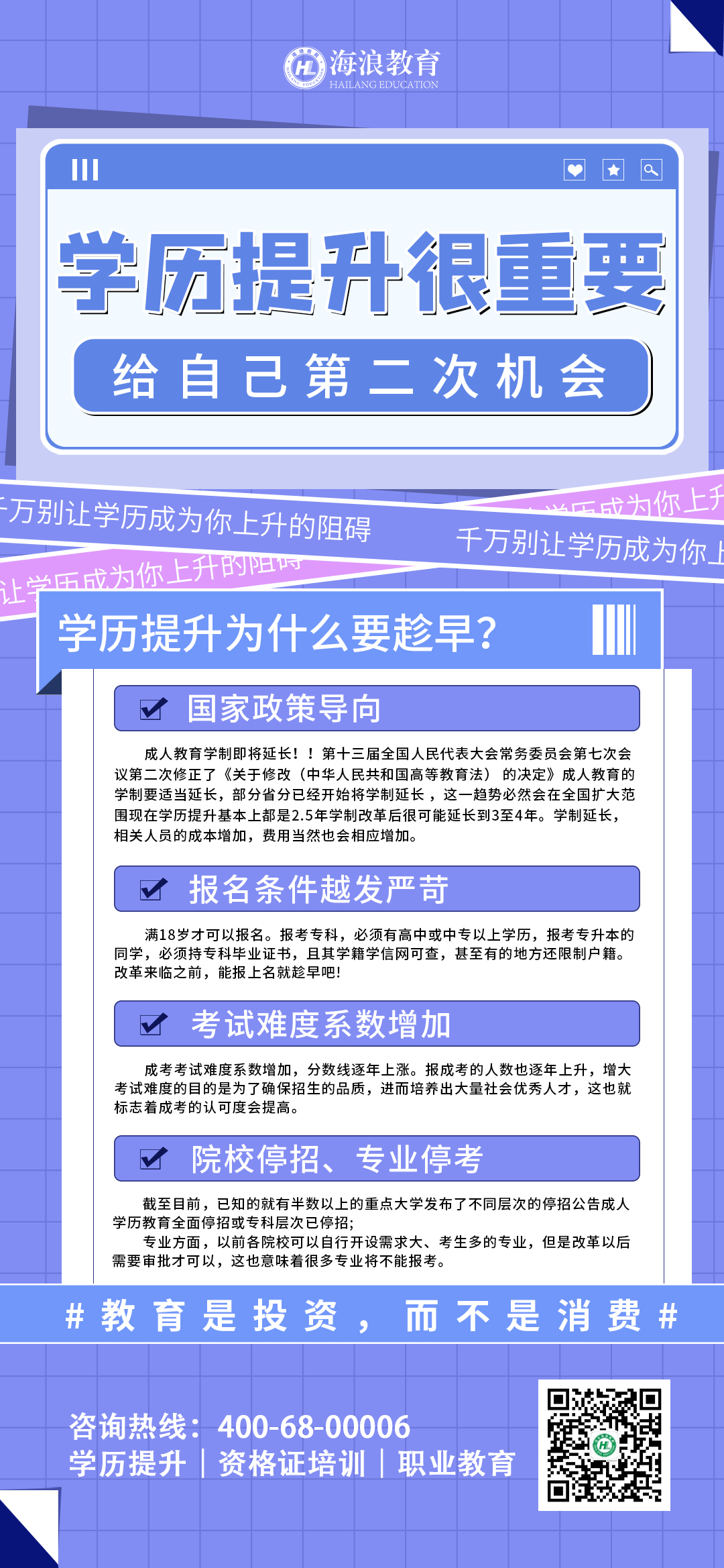 所謂成人高考,顧名思義就是針對成年人而設(shè)立的學(xué)歷提升渠道,彌補我們之前在學(xué)歷教育上的遺憾,爭取一個工作中公平競爭的機(jī)會。