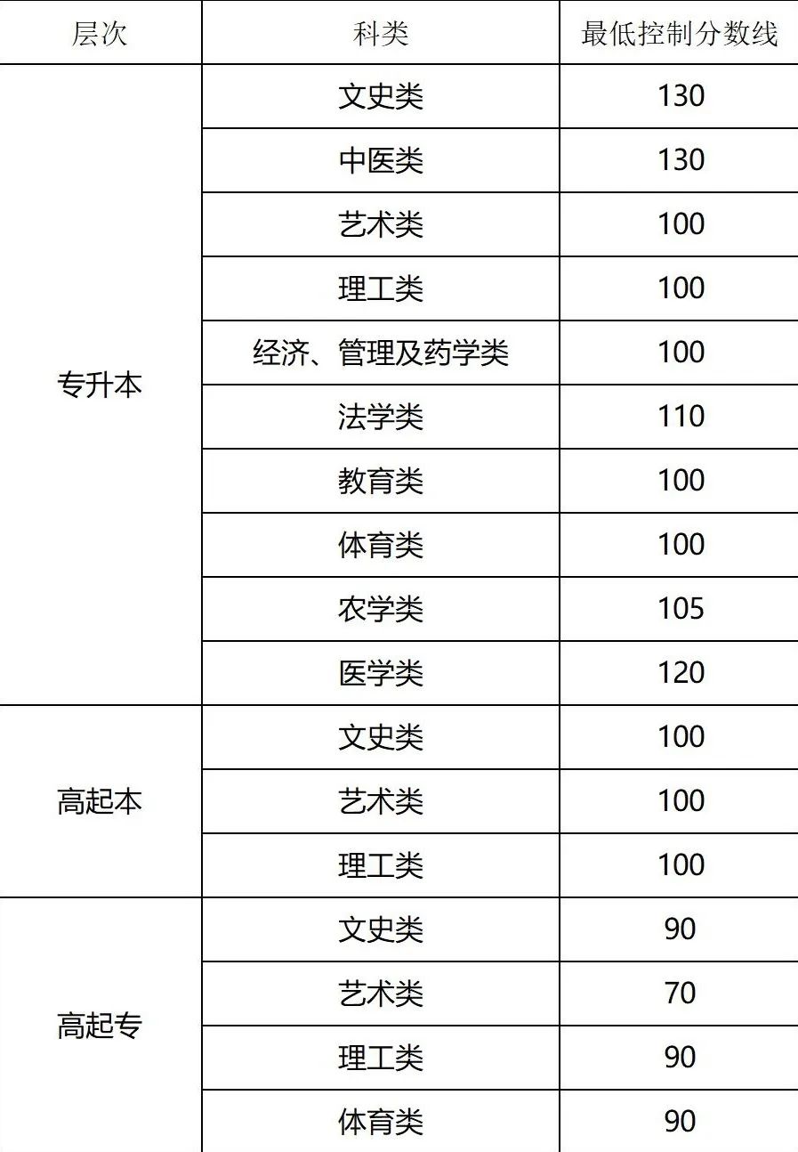 2023年成人高等學(xué)校招生錄取分?jǐn)?shù)線