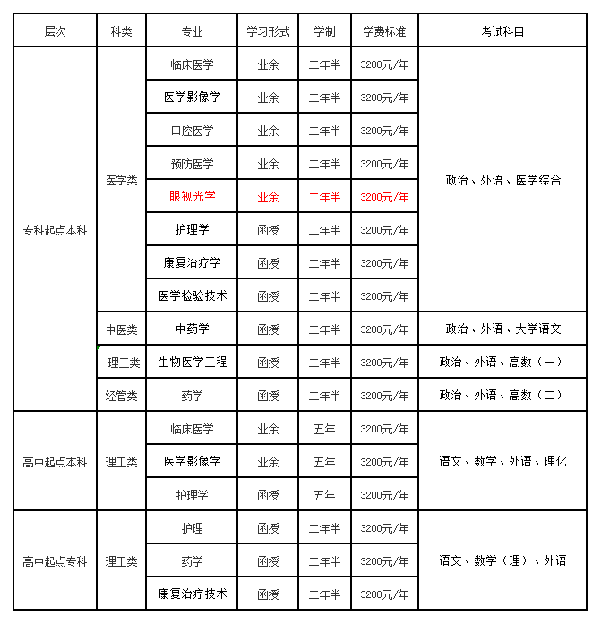 臨床醫(yī)學(xué)(業(yè)余):高中起點(diǎn)本科、專升本