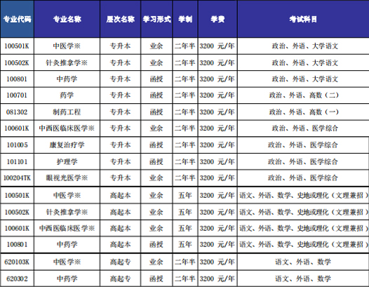 經(jīng)過五十多年的建設(shè)與發(fā)展,目前已經(jīng)形成較為完整的成人高等教育體系,具有成人高等學(xué)歷教育、自學(xué)考試和非學(xué)歷培訓(xùn)等多種辦學(xué)模式。學(xué)歷教育依托學(xué)校辦學(xué)資源,與普通高等教育招生專業(yè)接軌,包括高職高專(簡稱??疲?破瘘c本科(簡稱專升本)、高中起點本科(簡稱高起本)三個層次。??圃O(shè)有中醫(yī)學(xué)和中藥學(xué)2個專業(yè);專升本設(shè)有中醫(yī)學(xué)、中藥學(xué)、針灸推拿學(xué)、護(hù)理學(xué)、康復(fù)治療學(xué)、中西醫(yī)臨床醫(yī)學(xué)、眼視光醫(yī)學(xué)、藥學(xué)、制藥工程9個專業(yè),高起本設(shè)有中醫(yī)學(xué)、中藥學(xué)、針灸推拿學(xué)、中西醫(yī)臨床醫(yī)學(xué)、4個專業(yè),形成以中醫(yī)藥學(xué)科為主體,多學(xué)科門類協(xié)調(diào)發(fā)展的教育結(jié)構(gòu)體系。目前,成人高等學(xué)歷教育在校生數(shù)22000余人。