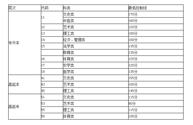 2017年山東省成人高考錄取最低控制分?jǐn)?shù)線