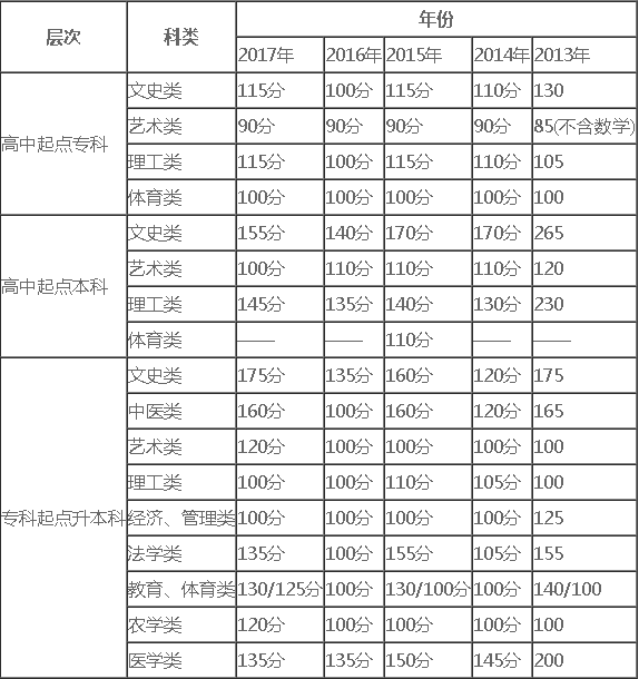 下面是整理的從《2013年-2017年山東省成人高考歷年錄取分數(shù)線》供您查閱。?