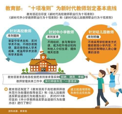 近日,教育部印發(fā)《新時(shí)代高校教師職業(yè)行為十項(xiàng)準(zhǔn)則》《新時(shí)代中小學(xué)教師職業(yè)行為十項(xiàng)準(zhǔn)則》《新時(shí)代幼兒園教師職業(yè)行為十項(xiàng)準(zhǔn)則》(以下統(tǒng)稱“準(zhǔn)則”),明確新時(shí)代教師職業(yè)規(guī)范,劃定基本底線,深化師德師風(fēng)建設(shè)。