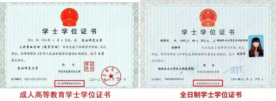 僅版式不同。但不像畢業(yè)證書的區(qū)別那么大,只是在學(xué)位證的末端,全日制本科學(xué)位證注明“普通高等院校本科畢業(yè)生”,“成人高等院校本科畢業(yè)生”。