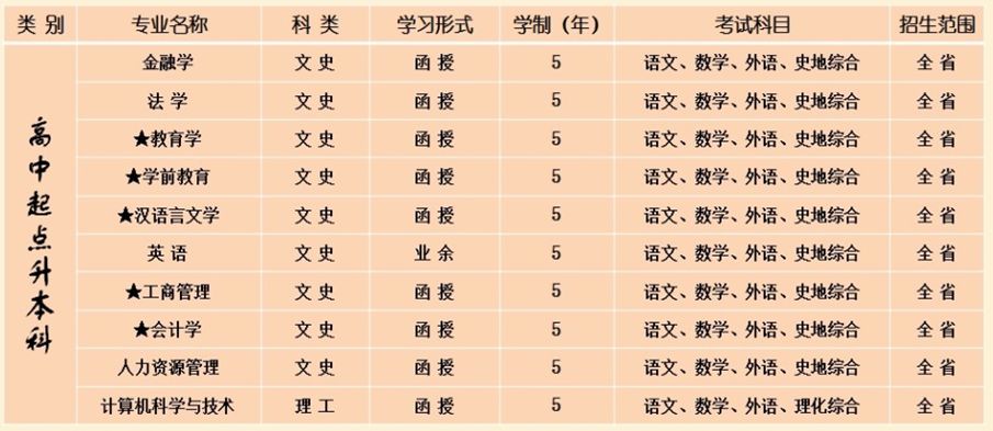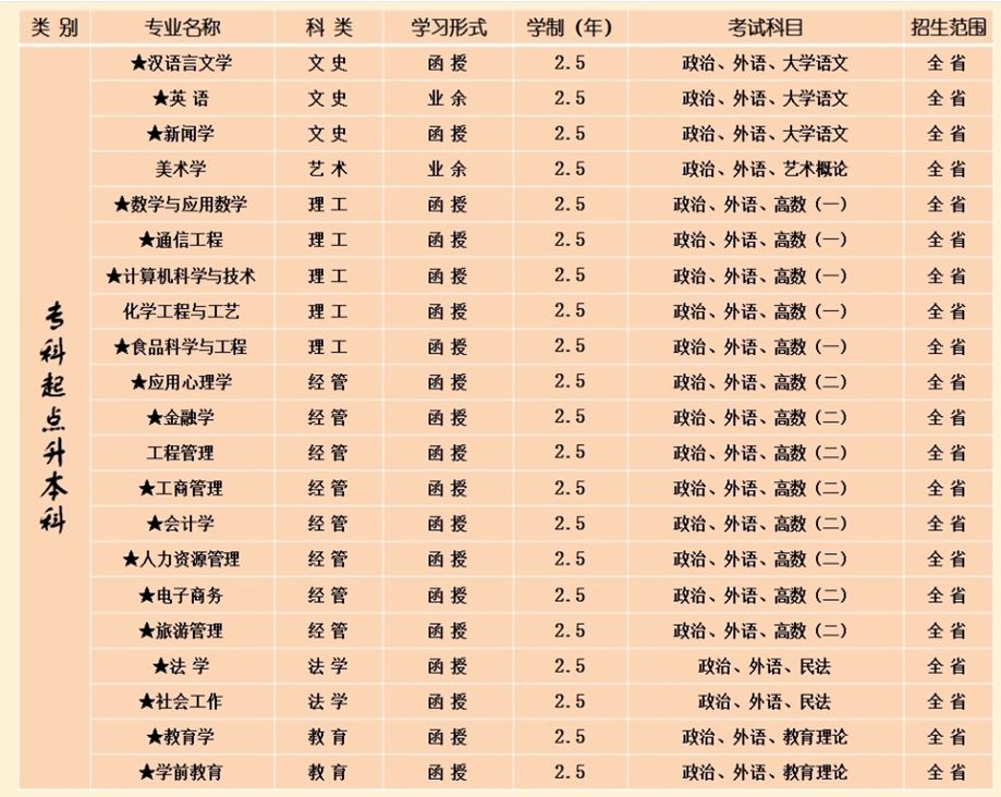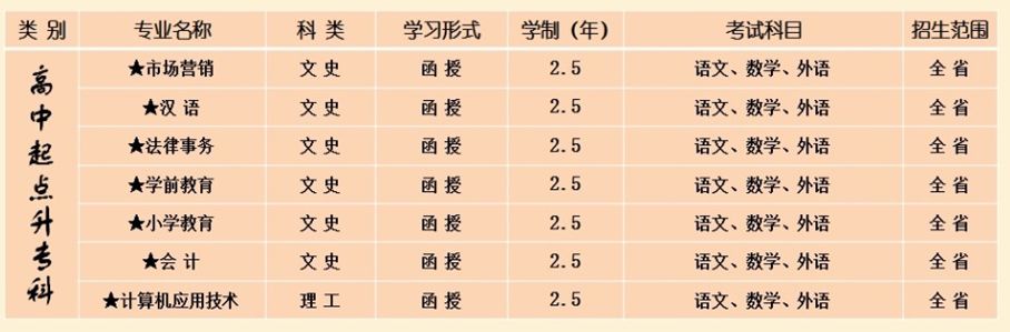 報考高中起點升專科的考生應(yīng)具有高中、中專或同等學(xué)歷;報考??破瘘c升本科的考生須具有國民教育系列大學(xué)??疲ê呗殻┮陨袭厴I(yè)證書。