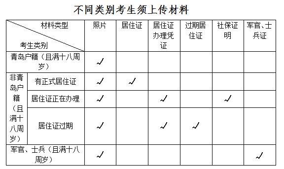 (二)異地(非青島戶籍)考生須上傳的材料: