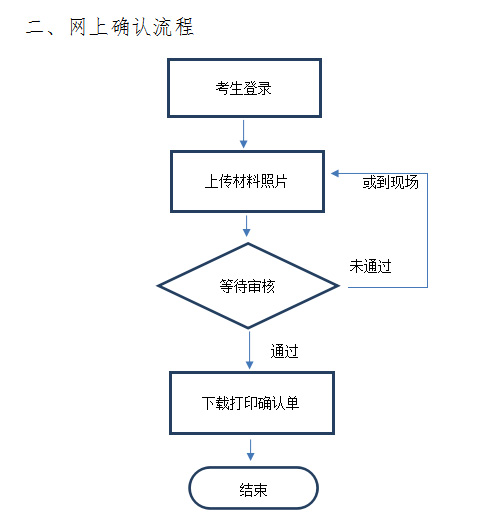 4.審核結(jié)果為“未通過”的考生,請登錄網(wǎng)上確認(rèn)平臺及時補充材料或根據(jù)提示內(nèi)容持相關(guān)材料到網(wǎng)上報名時選擇的確認(rèn)點進行現(xiàn)場審核。