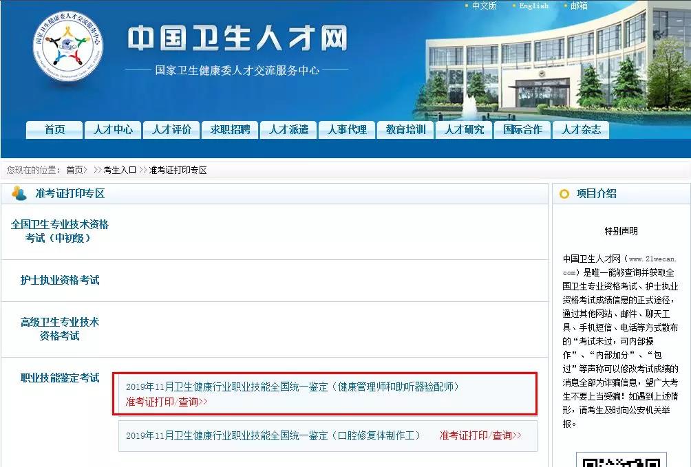 考生注意!2019年全國第4次健康管理師考試準考證打印入口已開通,請各位考生盡早打印。以下是準考證打印流程: