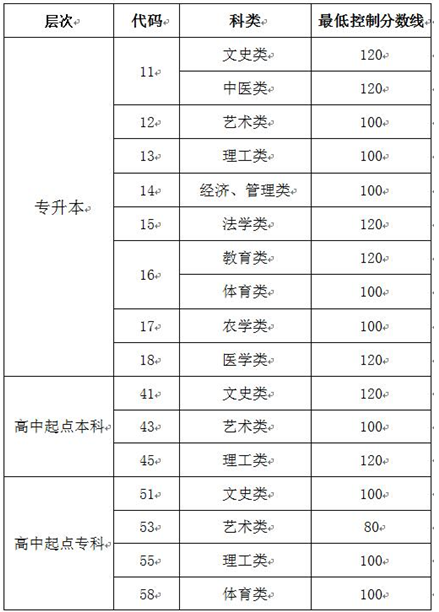 2019年山東省成人高考最低控制分數(shù)線
