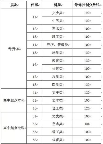 2019年山東省成人高考最低控制分?jǐn)?shù)線