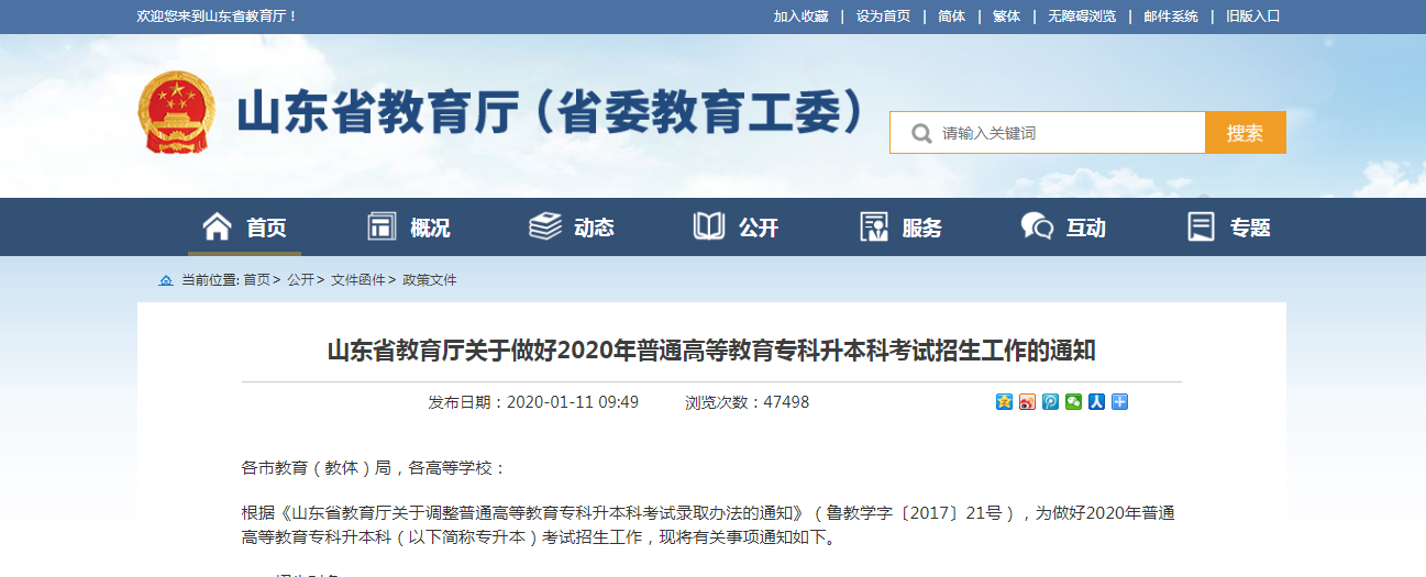 今日,山東省教育廳發(fā)布關(guān)于做好2020年普通高等教育專(zhuān)升本科考試招生工作的通知,通知內(nèi)容如下: