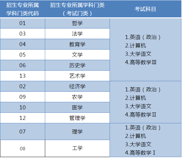 考試門(mén)類(lèi)依據(jù)教育部公布的《普通高等學(xué)校本科專(zhuān)業(yè)目錄(2012年)》劃分。