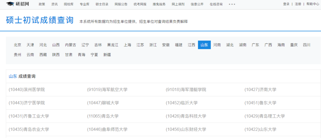 山東2020年碩士研究生招生考試初試成績,由各招生單位于2月20日公布。報考山東省招生單位的考生可根據(jù)招生單位官方網(wǎng)站發(fā)布的查詢渠道進(jìn)行成績查詢。