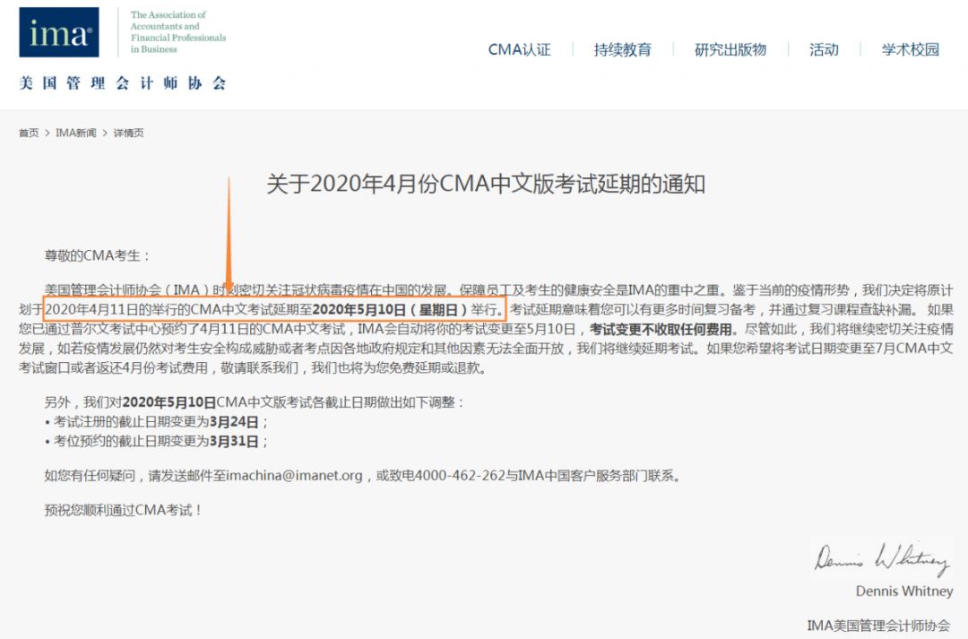 原定于2020年4月11日的舉行的CMA中文考試延期至2020年5月10日(星期日)舉行。