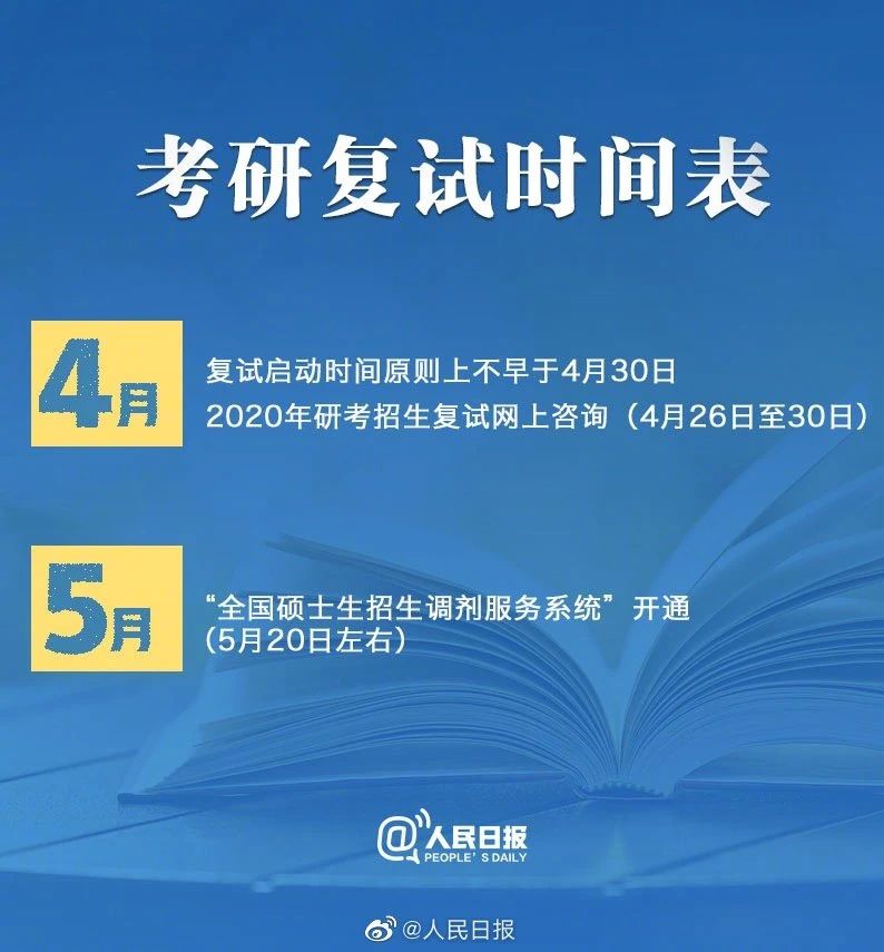 復(fù)試啟動原則上不早于4月30日,調(diào)劑系統(tǒng)開啟為5月20日。