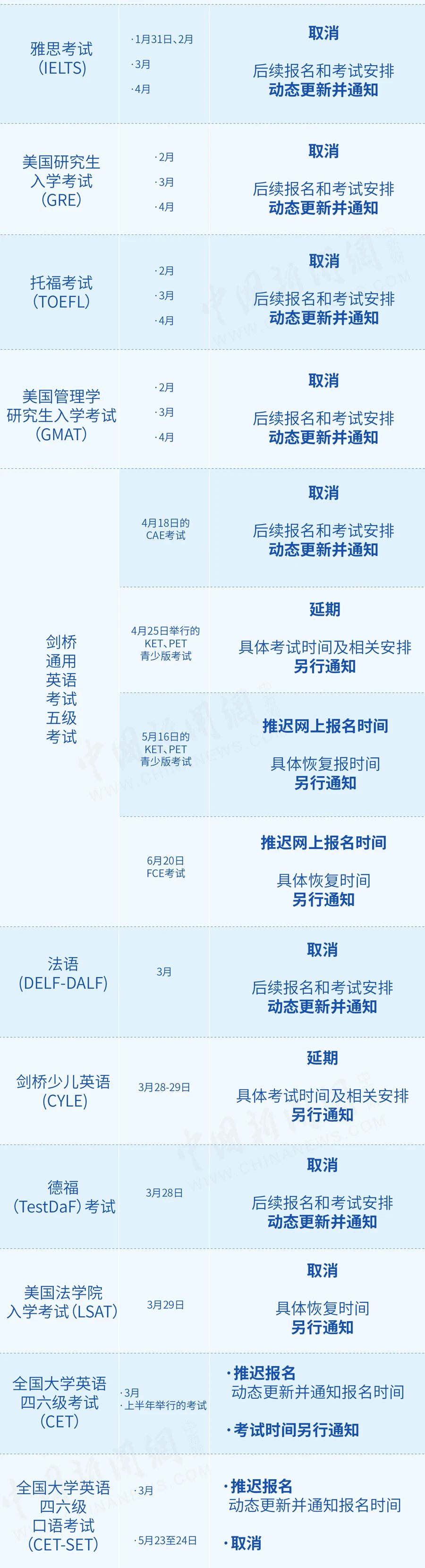 2020年各類考試延期信息匯總