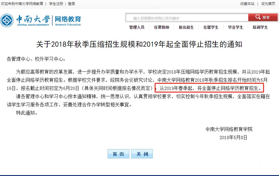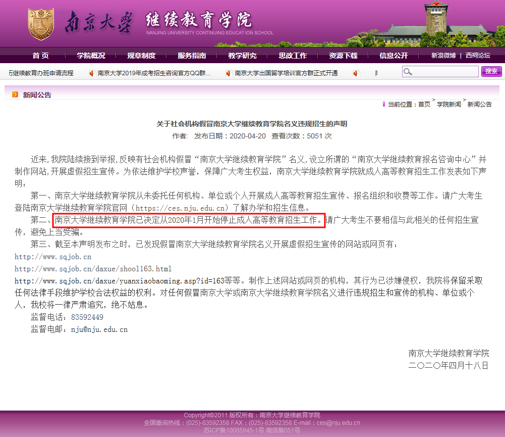 上個月,南京大學繼續(xù)教育學院官網(wǎng)發(fā)布通告,南京大學繼續(xù)教育學院已決定從2020年1月開始停止成人高等教育招生工作。消息一出,引起廣泛關注。