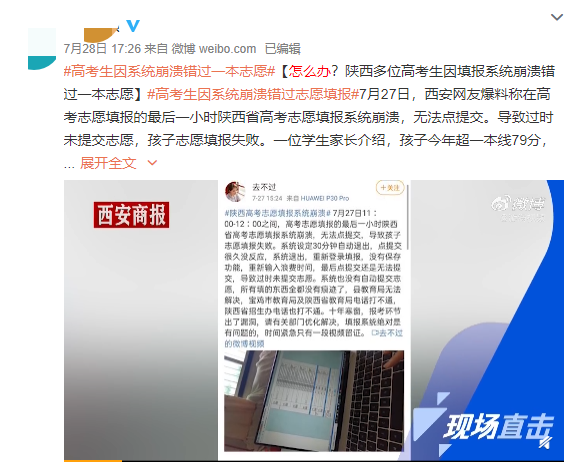 7月27日,一則“高考生因系統(tǒng)崩潰錯過一本志愿填報(bào)”的消息引發(fā)關(guān)注。