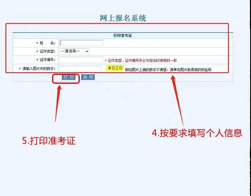 3、在打印準(zhǔn)考證界面輸入您的個(gè)人信息,點(diǎn)擊【打印】即可。