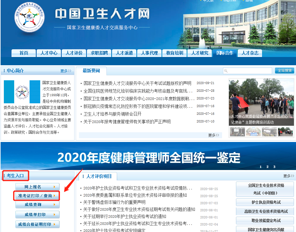 考生可于10月16-24日登陸中國衛(wèi)生人才網(wǎng)(https://www.21wecan.com/),在“考生入口”欄,點(diǎn)擊“準(zhǔn)考證打印”。(準(zhǔn)考證打印通道現(xiàn)已提前開啟)