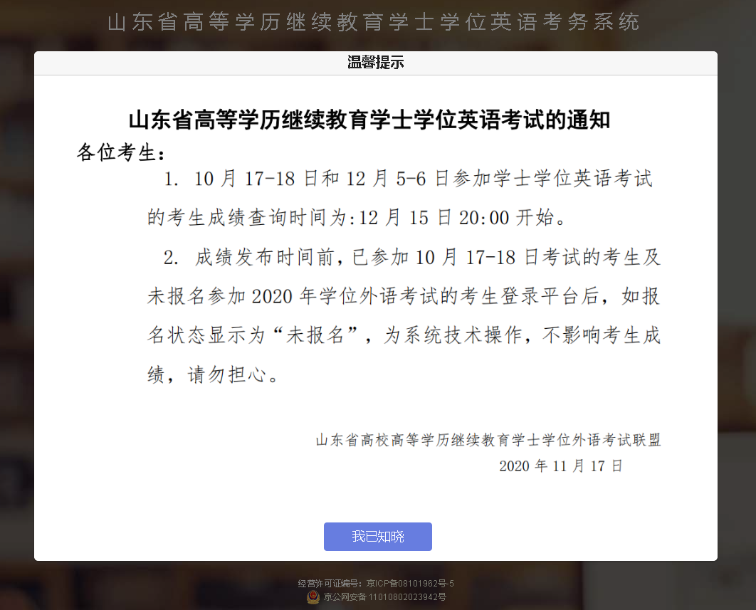 關(guān)于山東省高等學(xué)歷繼續(xù)教育學(xué)士學(xué)位英語成績查詢的通知