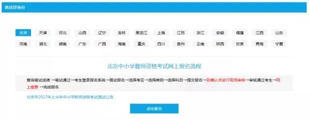 選擇報考省份(以“北京”地區(qū)為例),點(diǎn)“點(diǎn)擊報名”進(jìn)入下一步。