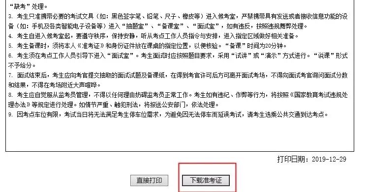 20202下教資面試準(zhǔn)考證開始打印了~