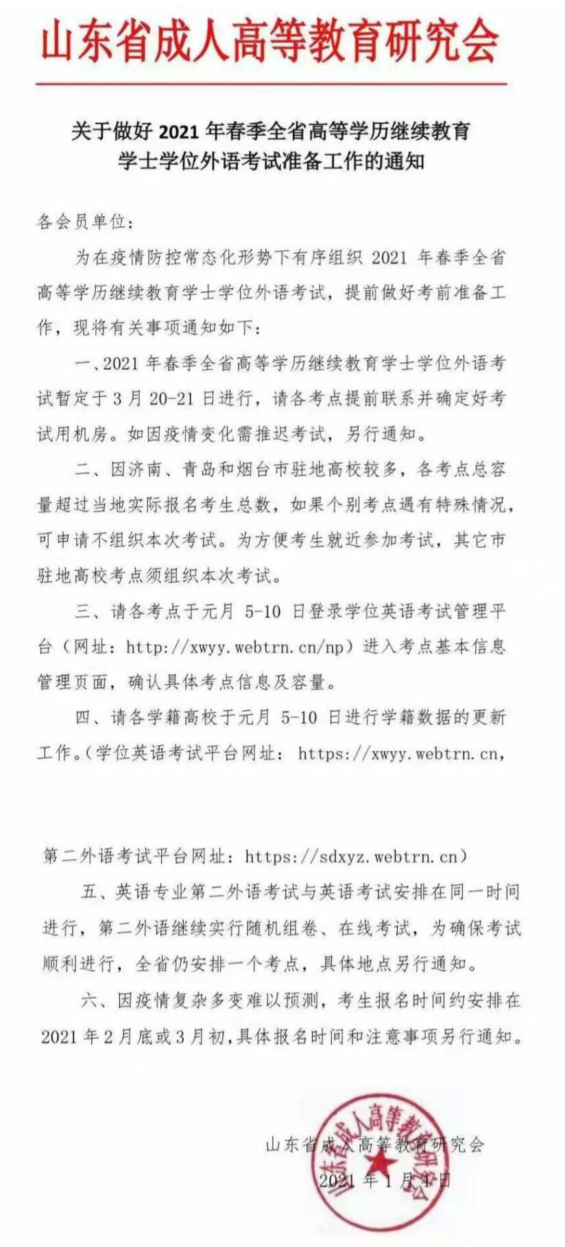 近日,有消息稱2021山東學(xué)位英語(yǔ)考試將于3月20-21日進(jìn)行,報(bào)名時(shí)間安排在2021年2月底或3月初,具體報(bào)名時(shí)間和注意事項(xiàng)另行通知。