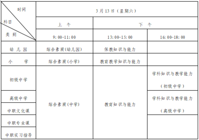 初級中學(xué)、高級中學(xué)、中職文化課類別“心理健康教育”、“日語”、“俄語”學(xué)科筆試僅開考科目一和科目二,其科目三(學(xué)科知識與教學(xué)能力科目)結(jié)合面試一并考核。