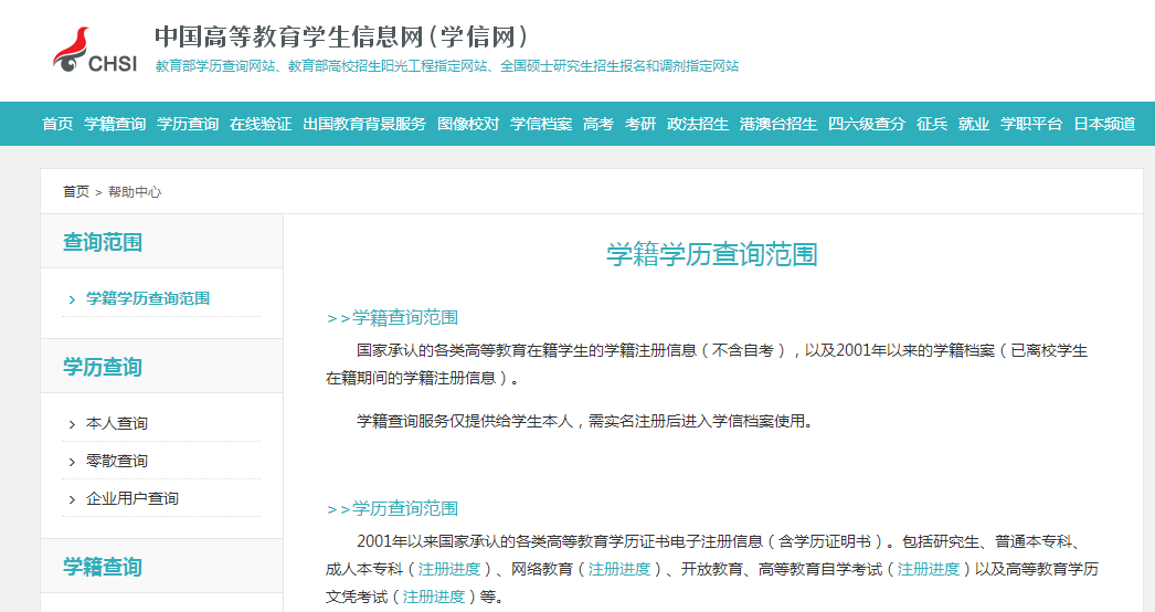 中國高等教育學生信息網(wǎng)(簡稱“學信網(wǎng)”)由全國高等學校學生信息咨詢與就業(yè)指導中心主辦,由中心控股的學信咨詢服務有限公司承辦。學信網(wǎng)教育部指定的學歷查詢唯一網(wǎng)站、教育部高校招生陽光工程指定網(wǎng)站、全碩士研究生招生報名和調劑指定網(wǎng)站。學信網(wǎng)是教育部高校學生司指定的電子政務平臺,網(wǎng)站依托中心建立的集高校招生、學籍學歷、畢業(yè)生就業(yè)和全國高校學生資助信息一體化的大型數(shù)據(jù)倉庫,開通“陽光高考”信息平臺、學籍學歷信息管理平臺、中國研究生招生信息網(wǎng)、全國高校學生資助信息管理平臺、內地高校面向港澳臺招生信息網(wǎng)等平臺,開通學歷查詢系統(tǒng)、在線驗證系統(tǒng)、碩士研究生網(wǎng)上報名和錄取檢查系統(tǒng)、碩士研究生招生調劑服務系統(tǒng)、全國高校學生資助管理系統(tǒng)、學歷認證網(wǎng)上辦公系統(tǒng)等20余個電子政務系統(tǒng)和社會信息服務系。